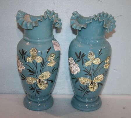 2045 Pair of Blue Bristol Glass Vases
