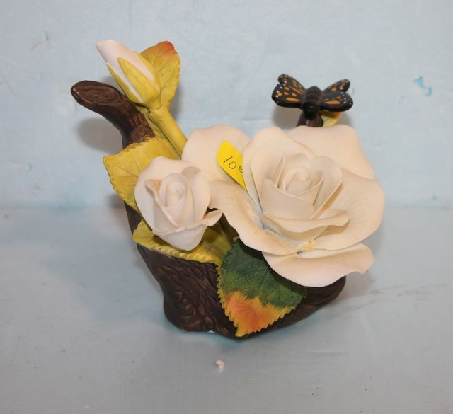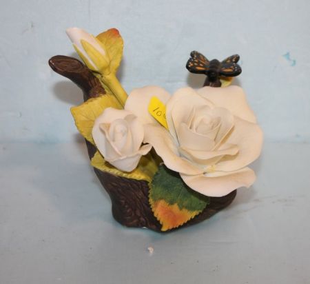 Andrea Porcelain Roses with Butterfly; 4" h. Andrea Porcelain Roses with Butterfly; 4" h.
