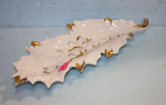 Paris Porcelain Leaf Tray; 15" l. Paris Porcelain Leaf Tray; 15" l.