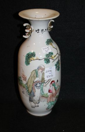 Hand Painted Oriental Vase, chip on handle; 9" h. Hand Painted Oriental Vase, chip on handle; 9" h.