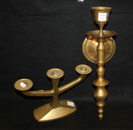 Brass Candlestick (10 1/2" w., 6" h.) and Brass Wall Sconce (15 1/2" h.) Brass Candlestick (10 1/2" w., 6" h.) and Brass Wall Sconce (15 1/2" h.)