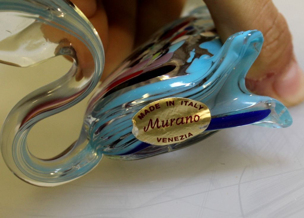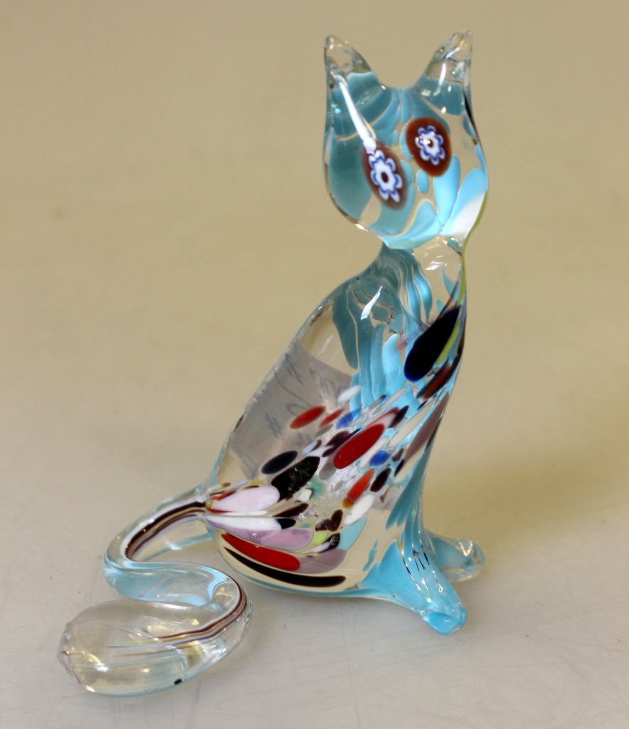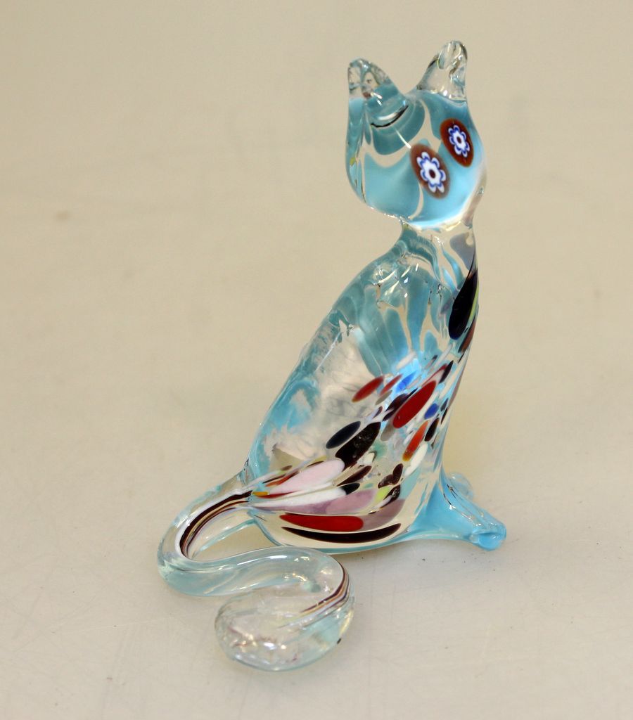 Murano glass cat with paper label.; 4 1/2" h. Murano glass cat with paper label.; 4 1/2" h.