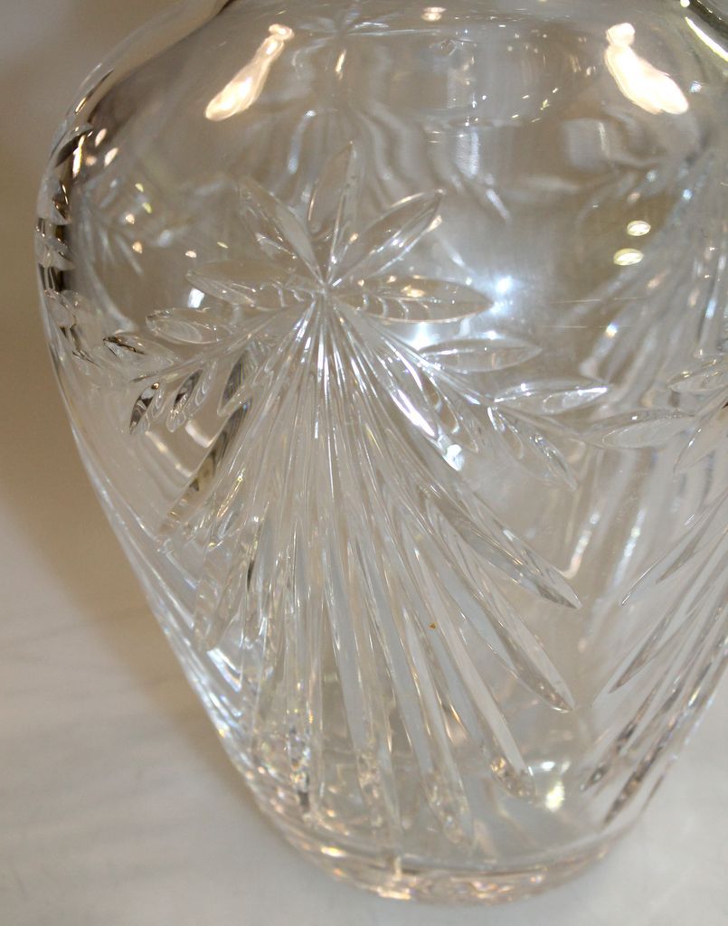 Large unsigned crystal vase.; 8" dia., 12 1/2" h. Large unsigned crystal vase.; 8" dia., 12 1/2" h.