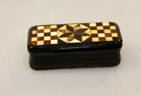 Antique snuff box with inlaid square and star on lid. Antique snuff box with inlaid square and star on lid.