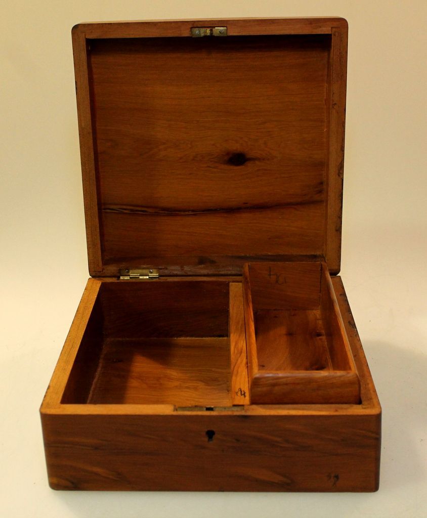 Letter box with painting of dog on the lid.; 8" square, 3 1/2" h. Letter box with painting of dog on the lid.; 8" square, 3 1/2" h.
