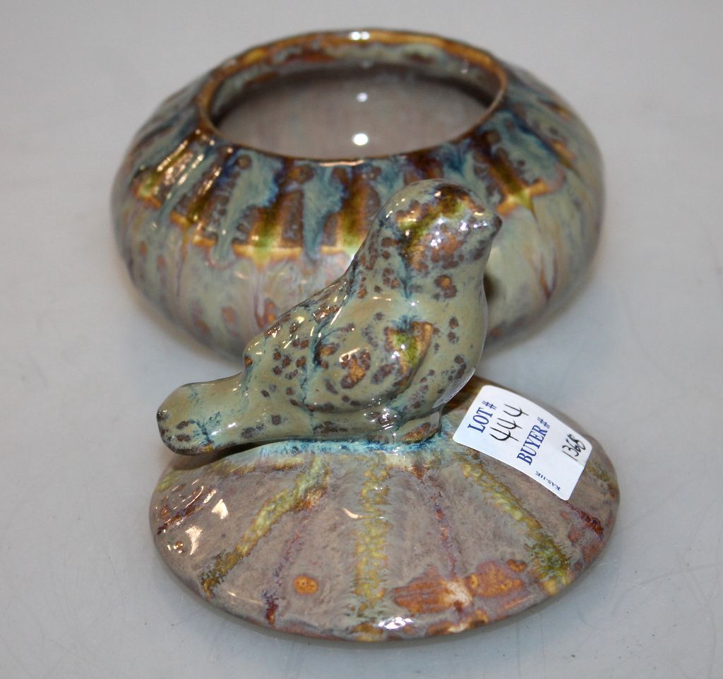 2002 Good Earth pottery covered dish with bird lid.; 4 1/2" dia. 2002 Good Earth pottery covered dish with bird lid.; 4 1/2" dia.