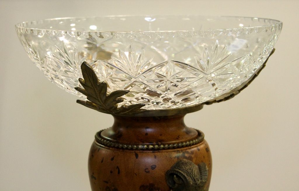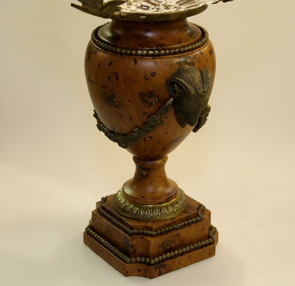 539 Faux Painted Metal Urn With Large Pressed Glass Bowl