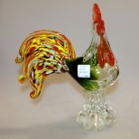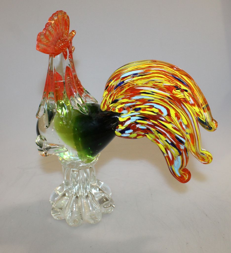 Decorative glass rooster.; 11" h., 8 1/2" w. Decorative glass rooster.; 11" h., 8 1/2" w.