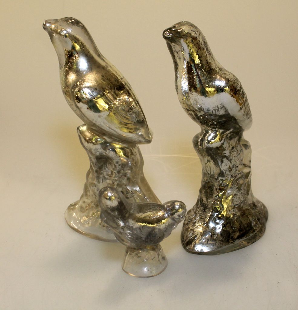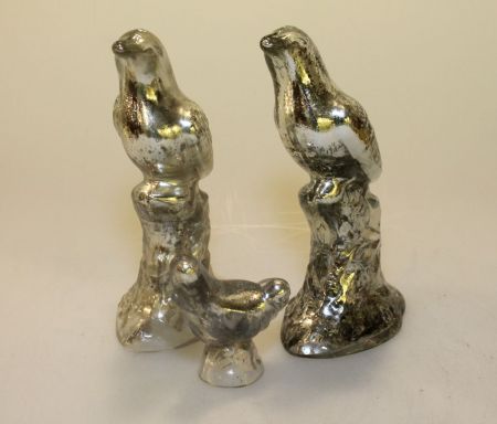 Three glass birds.; 2- 9" h.; 1- 4" h. Three glass birds.; 2- 9" h.; 1- 4" h.