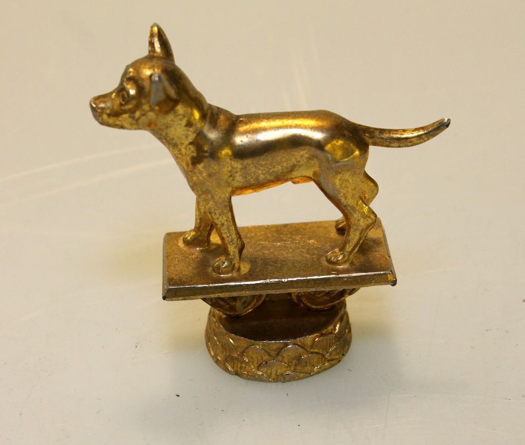 Brass decorative dog by Dodge Incorporated.; 3 1/2" w., 3 1/2" h. Brass decorative dog by Dodge Incorporated.; 3 1/2" w., 3 1/2" h.