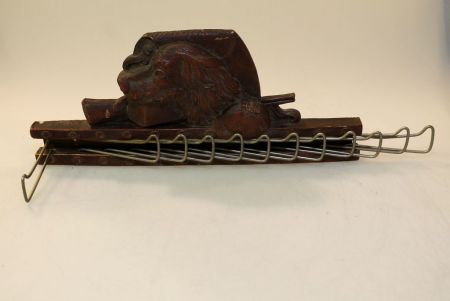 Black Forest tie rack with dog motif rack of dog head, gun, hat and bag.; 12 1/2" w., 5" h. Black Forest tie rack with dog motif rack of dog head, gun, hat and bag.; 12 1/2" w., 5" h.