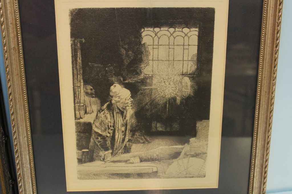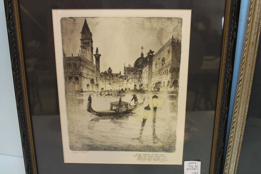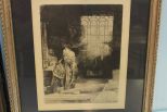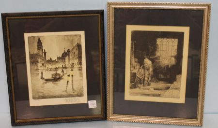 Two Etchings.; Signed Venetian scene, 12" w., 14" h.; Fortune teller, 12" w., 15" h. Two Etchings.; Signed Venetian scene, 12" w., 14" h.; Fortune teller, 12" w., 15" h.