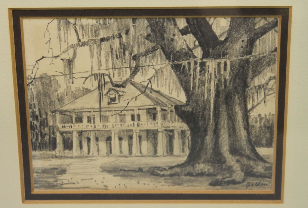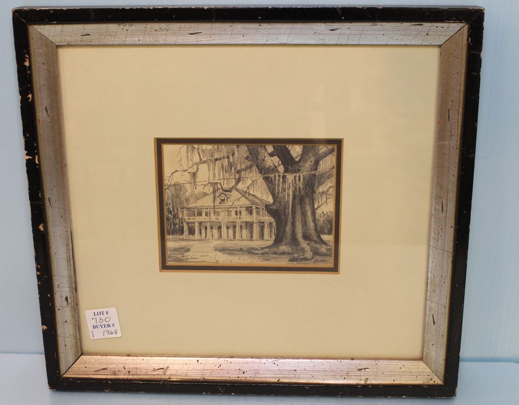 Graphite Sketch of antebellum home signed Golden.; 13" w., 12" h. Graphite Sketch of antebellum home signed Golden.; 13" w., 12" h.
