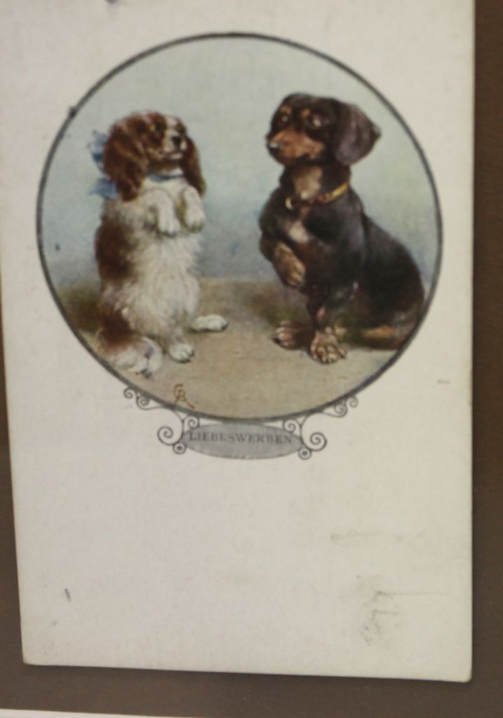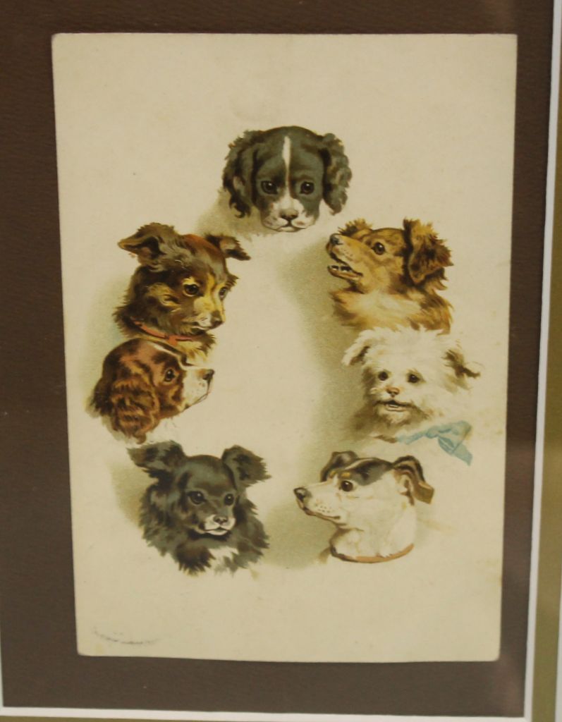 Two framed postcards of dogs.; 13" w., 14" h. Two framed postcards of dogs.; 13" w., 14" h.