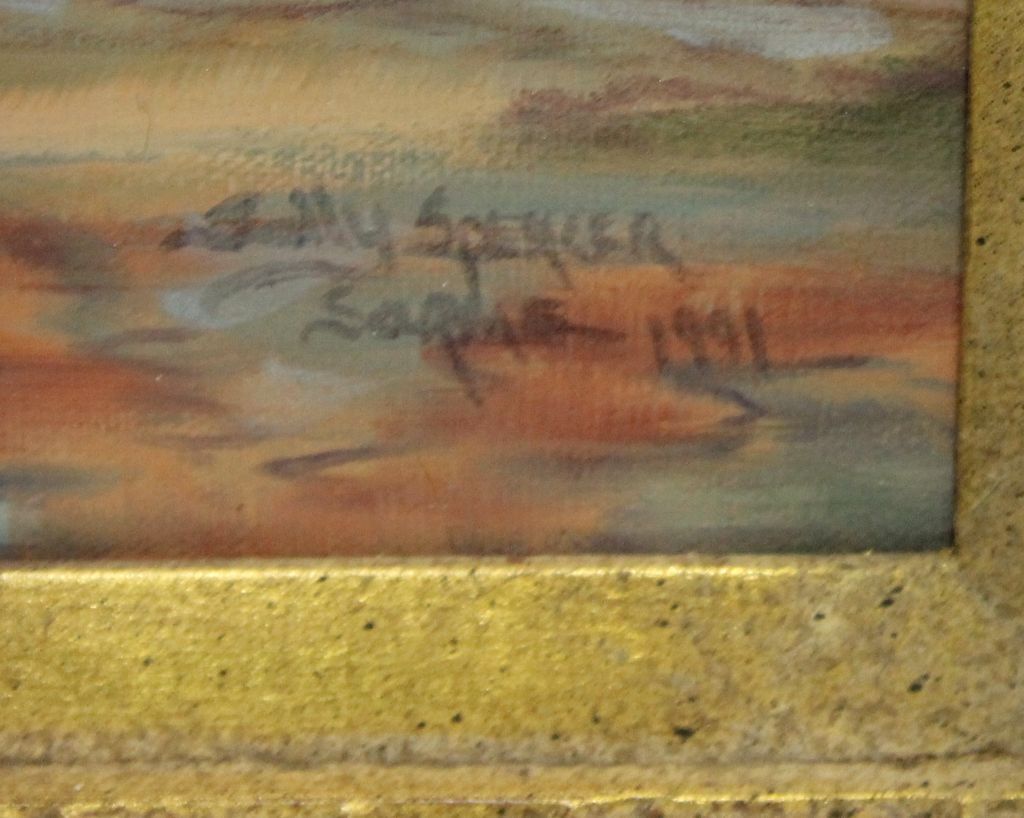 Oil painting of dog with ball signed 1991 Sally Spencer (Jackson artist).; 24" w., 28" h. Oil painting of dog with ball signed 1991 Sally Spencer (Jackson artist).; 24" w., 28" h.