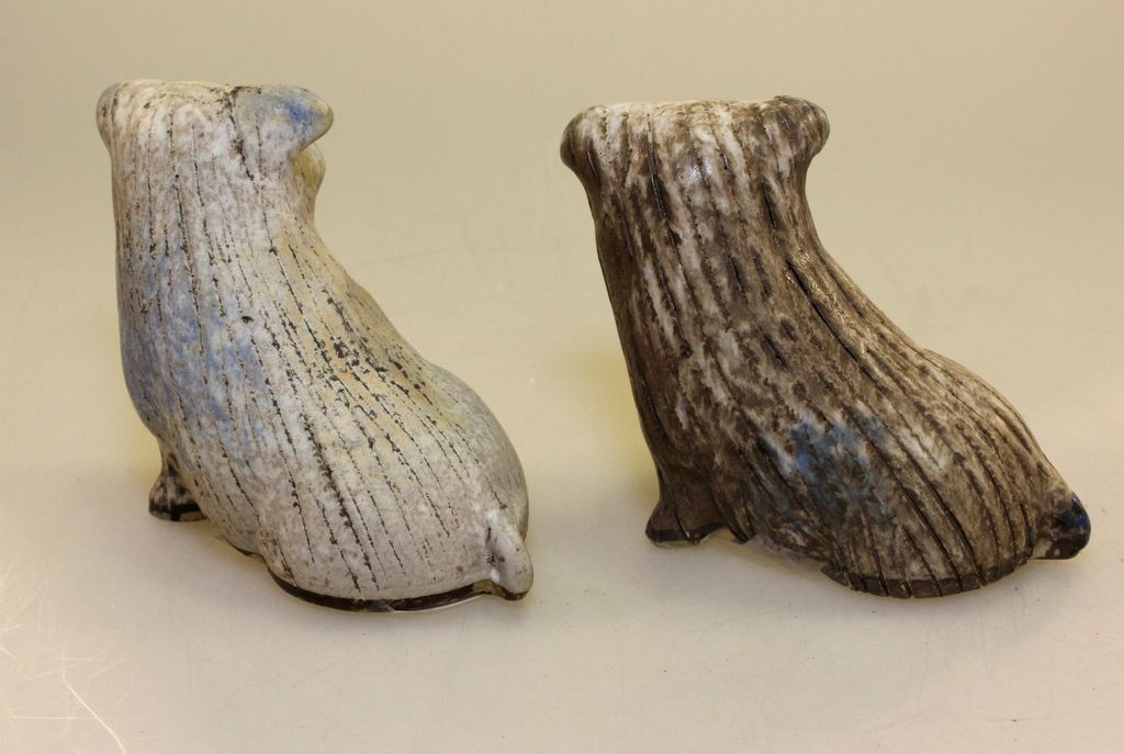 Two signed McCarty nutmeg pigs.; 5" h. Two signed McCarty nutmeg pigs.; 5" h.