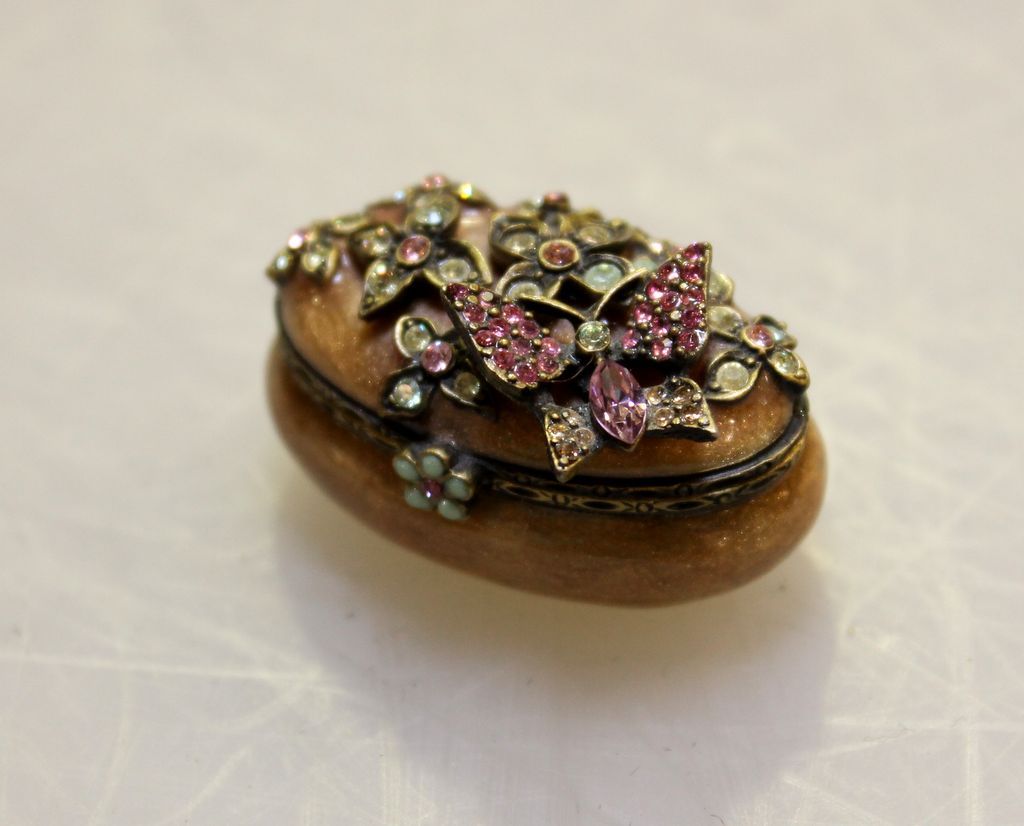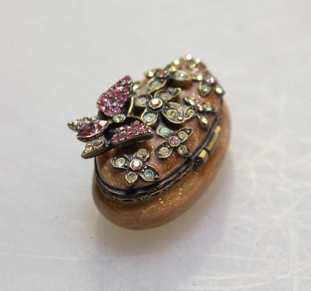 Jay Strongwater enamel box with butterfly, #456 in original box.; 2" Jay Strongwater enamel box with butterfly, #456 in original box.; 2"