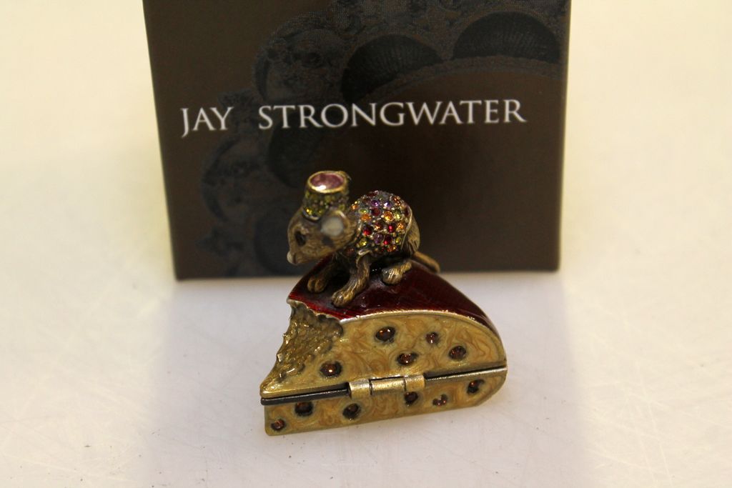 Jay Strongwater topaz gold enamel box with mouse in original box.; 2" Jay Strongwater topaz gold enamel box with mouse in original box.; 2"