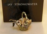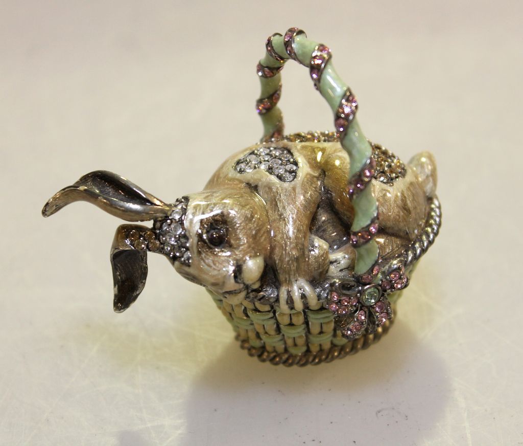 Jay Strongwater enamel basket with rabbit, #656, in original box. 3 1/2" Jay Strongwater enamel basket with rabbit, #656, in original box. 3 1/2"