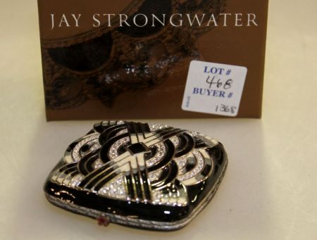 468 Jay Strongwater Black Enamel Deco Style Compact