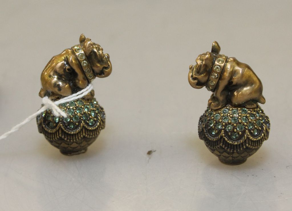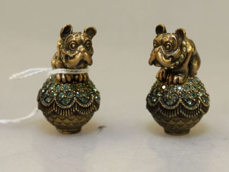 Two Jay Strongwater lamp finials of bulldogs Two Jay Strongwater lamp finials of bulldogs