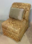 Large upholstered boudoir chair with silk pillow.; 24" w., 28" d., 38" h. Large upholstered boudoir chair with silk pillow.; 24" w., 28" d., 38" h.