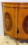 High style inlay demi-lune console with beautiful fan inlay on top and inlay urns on each front panel.; 45 1/2" w., 19 1/2" d., 36" h. High style inlay demi-lune console with beautiful fan inlay on top and inlay urns on each front panel.; 45 1/2" w., 19 1/2" d., 36" h.