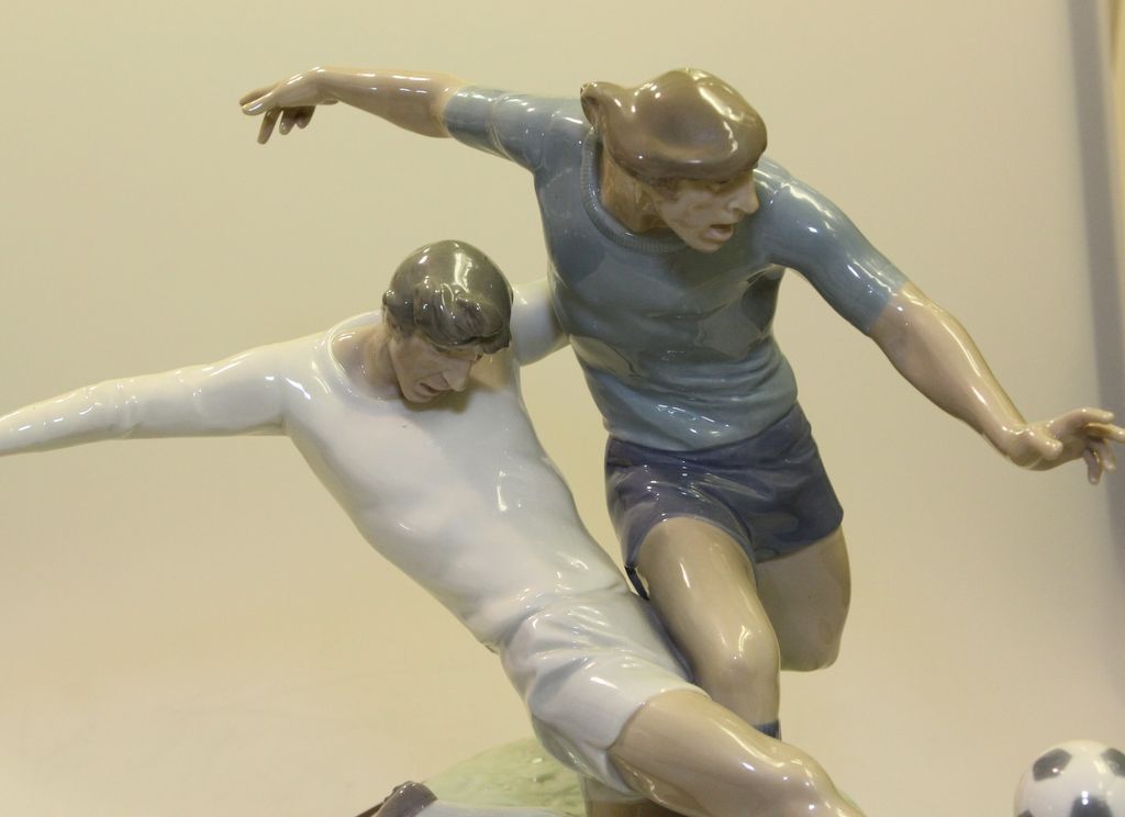 Large figural Lladro group, #5879 shot on goal. In mint condition with original box.; 10" h. Large figural Lladro group, #5879 shot on goal. In mint condition with original box.; 10" h.