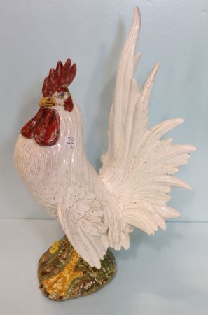236 Large Rare Pottery Painted Rooster Signed by Artist