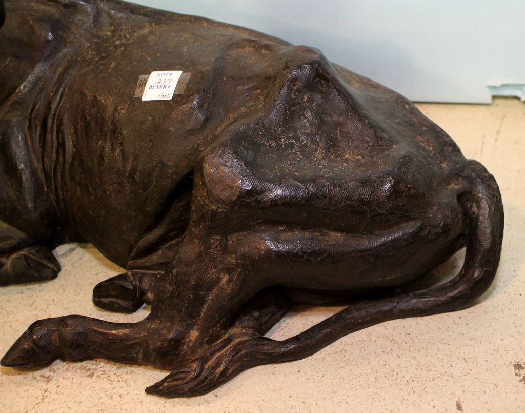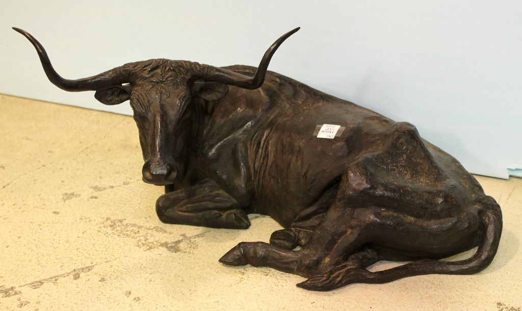 5/75 longhorn bronze signed by Cynthia Rigden (b. 1943).; 23" w., 12" h. 5/75 longhorn bronze signed by Cynthia Rigden (b. 1943).; 23" w., 12" h.