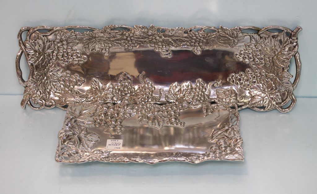 Two Arthur Court pewter trays.; 11 1/2"x 6" & 19"x 6" Two Arthur Court pewter trays.; 11 1/2"x 6" & 19"x 6"