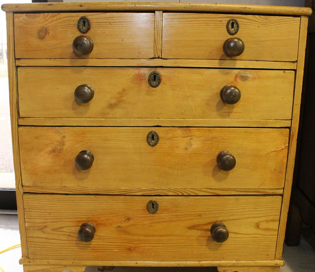 19th century pine five drawer chest on bracket feet.; 34" w., 19" d., 37" h. 19th century pine five drawer chest on bracket feet.; 34" w., 19" d., 37" h.