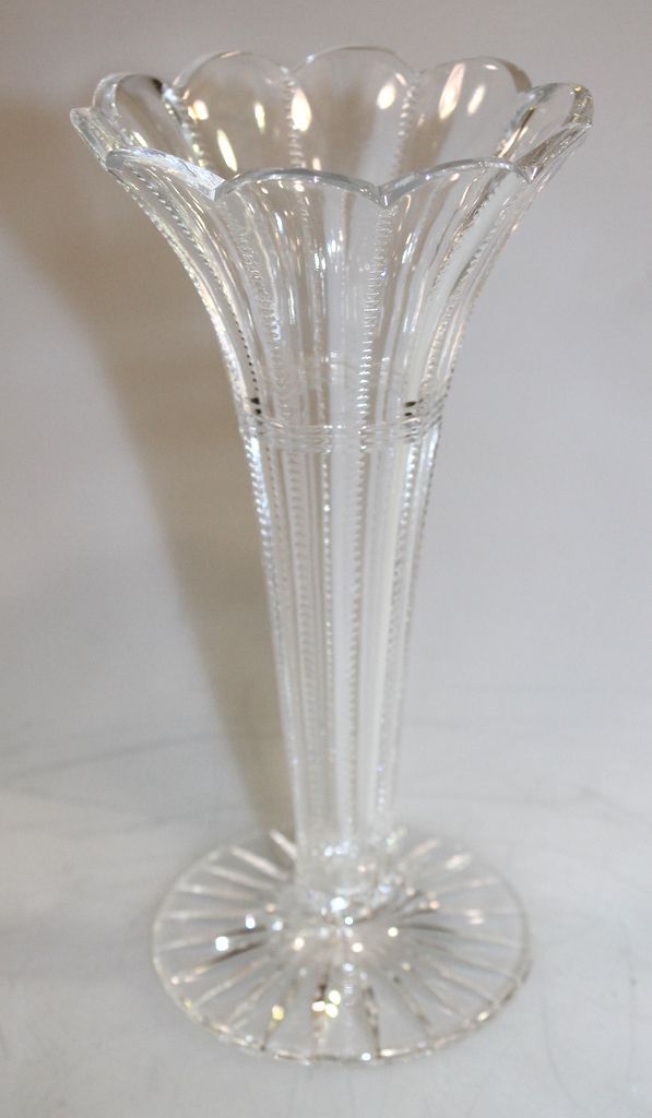William Yeoward signed cut glass vase.; 9" h. William Yeoward signed cut glass vase.; 9" h.