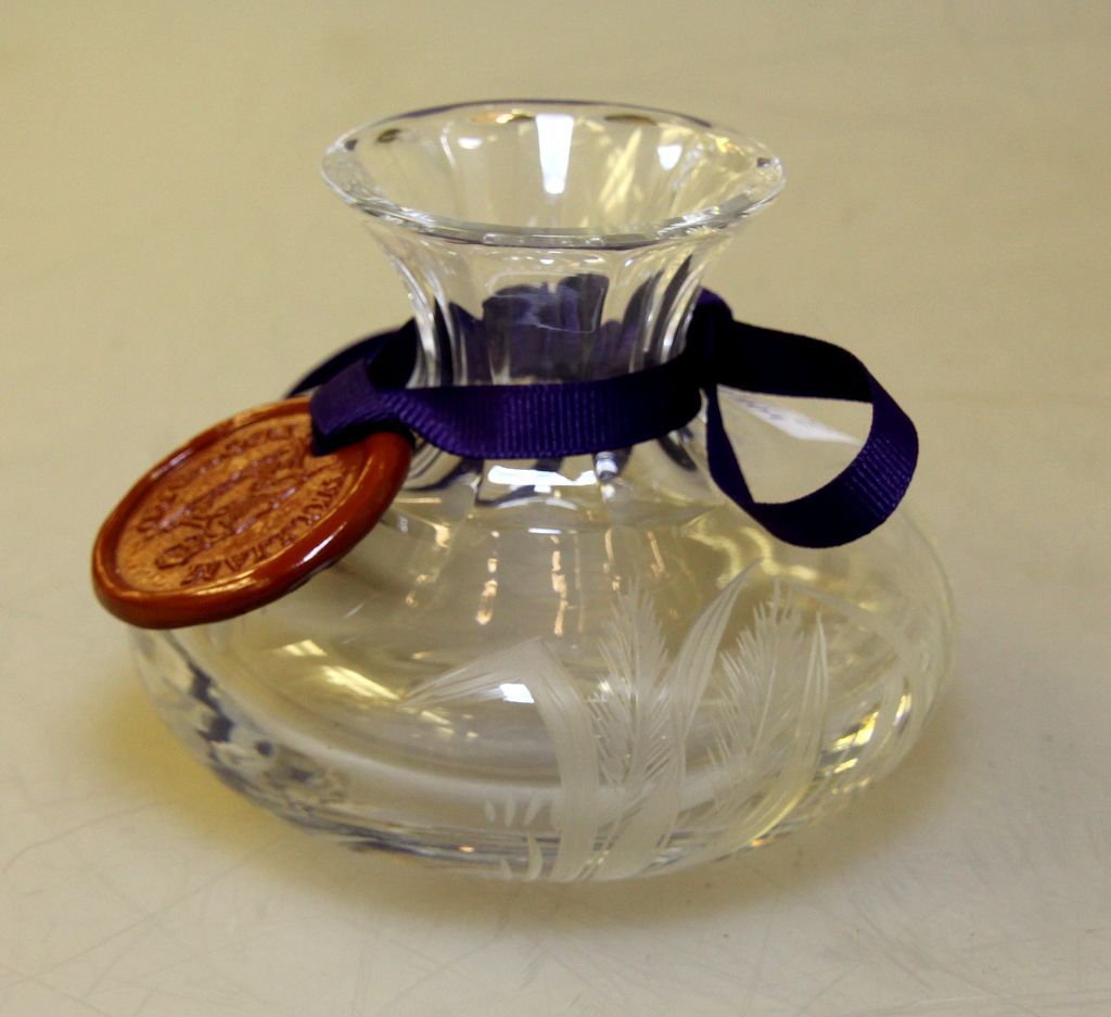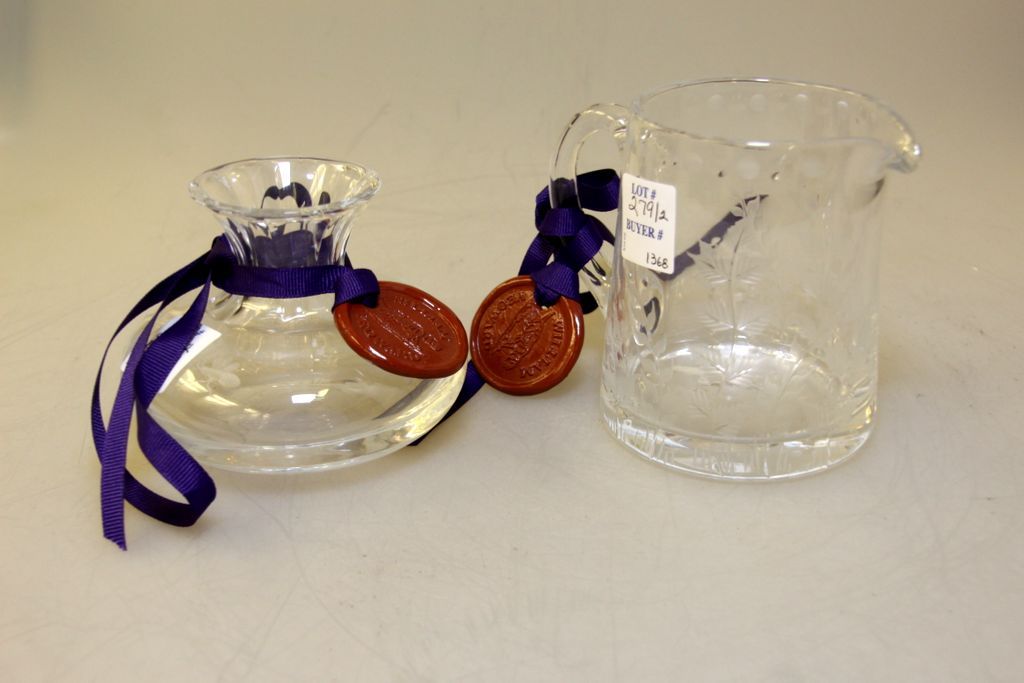 Signed William Yeoward Flower Centre and a William Yeoward "Fern" Creamer 3 1/2" h.; Condiment 6" h. Signed William Yeoward Flower Centre and a William Yeoward "Fern" Creamer 3 1/2" h.; Condiment 6" h.