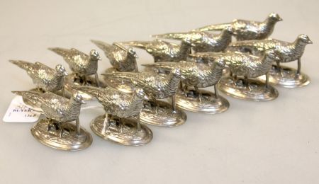 310 Set of Twelve Pewter Pheasant Name Plates