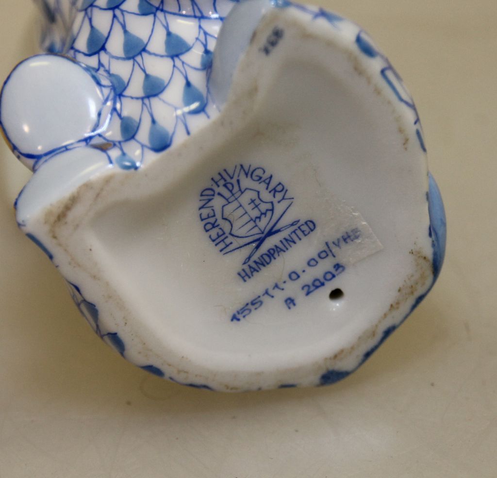 Blue Herend fishnet elephant with trunk up.; 3" h. Blue Herend fishnet elephant with trunk up.; 3" h.
