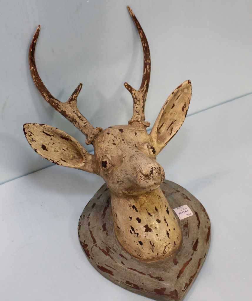 546 Shabby Chic Painted Wood Carved Deer Head Plaque