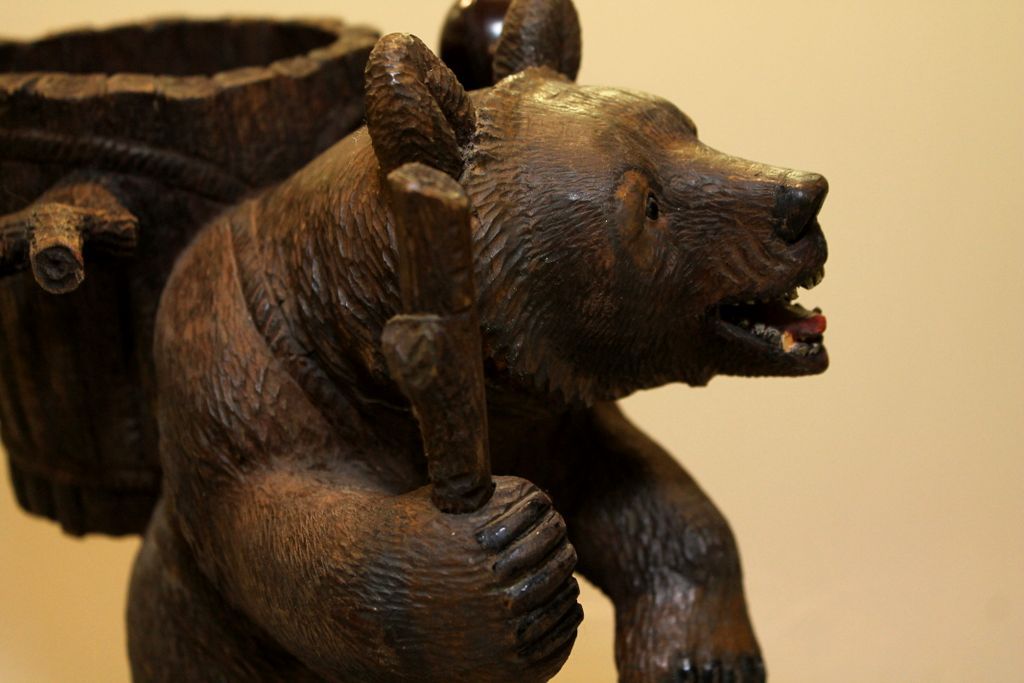 615 Carved Black Forest Bear Holding Stick Carrying Pot