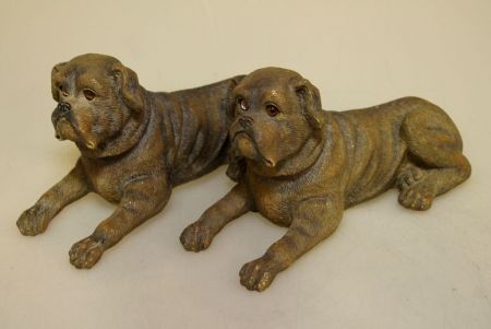644 Pair of Reclining Resin Dogs & One Single Resin Dog