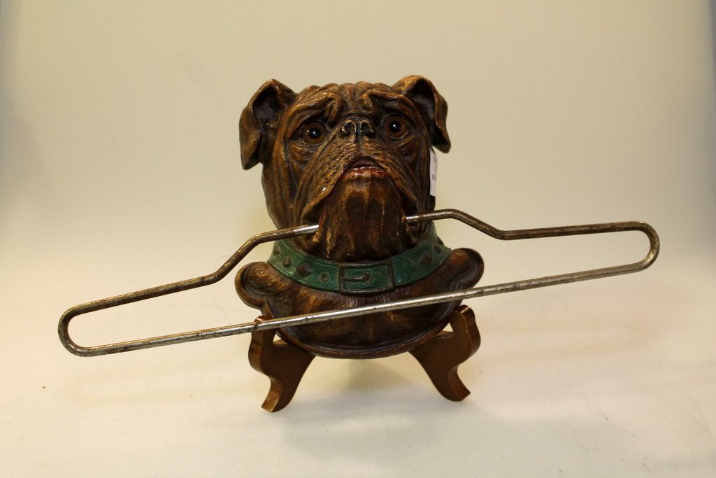 425 Carved Victorian Black Forest Bulldog Tie Rack