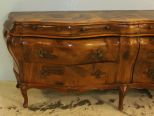 Elaborate 20th century burl walnut double bombay Country French dresser, rare form, has three drawers over four larger drawers.; 82" w., 16 1/2" d., 34" h. Elaborate 20th century burl walnut double bombay Country French dresser, rare form, has three drawers over four larger drawers.; 82" w., 16 1/2" d., 34" h.