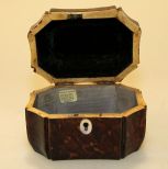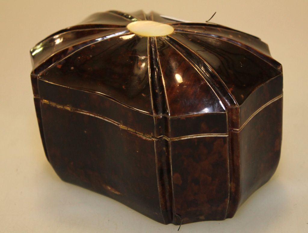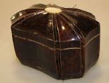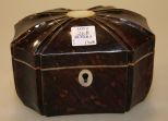 19th century tortoise shell octagon shaped box with mother of pearl keyhole.; 6" w., 5" d., 3 1/2" h. 19th century tortoise shell octagon shaped box with mother of pearl keyhole.; 6" w., 5" d., 3 1/2" h.