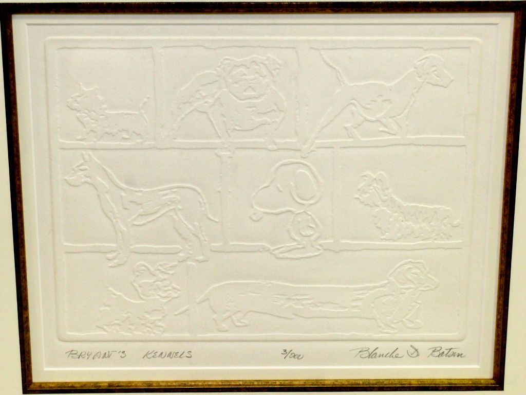 Bryan's Kennels pressed paper by Blanche Batson, 3/200; 21" w., 18" h. Bryan's Kennels pressed paper by Blanche Batson, 3/200; 21" w., 18" h.