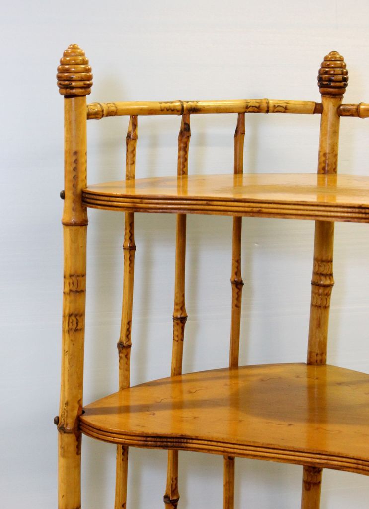 Bee Hive Finial Corner Bamboo Shelf.; 14" w., 19" d., 31" h. Bee Hive Finial Corner Bamboo Shelf.; 14" w., 19" d., 31" h.