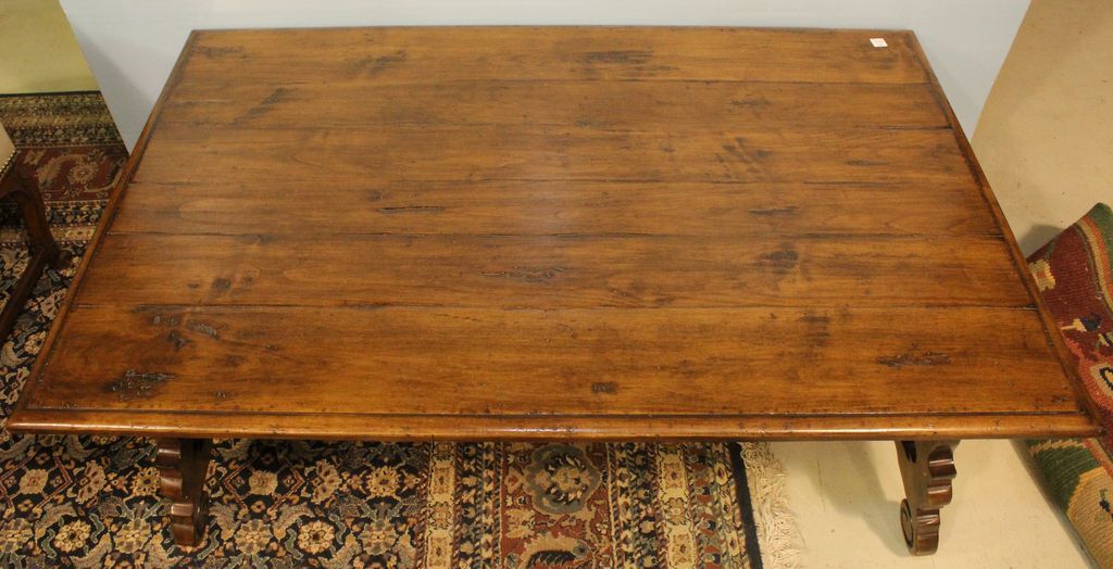 Adele Kerr Coffee Table with iron stretcher.; 54" w., 36 1/2" d. Adele Kerr Coffee Table with iron stretcher.; 54" w., 36 1/2" d.