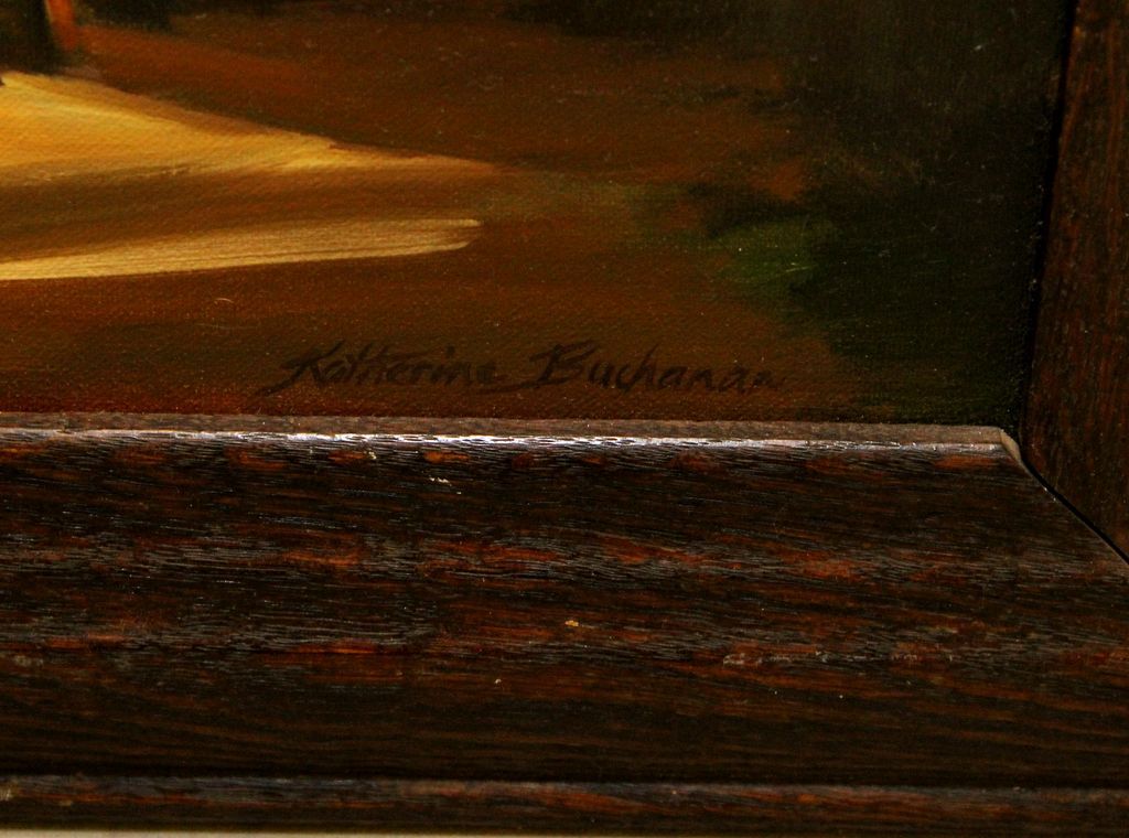 Oil painting of chair, painting and window setting signed Katherine Buchanan (Mississippi artist).; 19" w., 31" h. Oil painting of chair, painting and window setting signed Katherine Buchanan (Mississippi artist).; 19" w., 31" h.