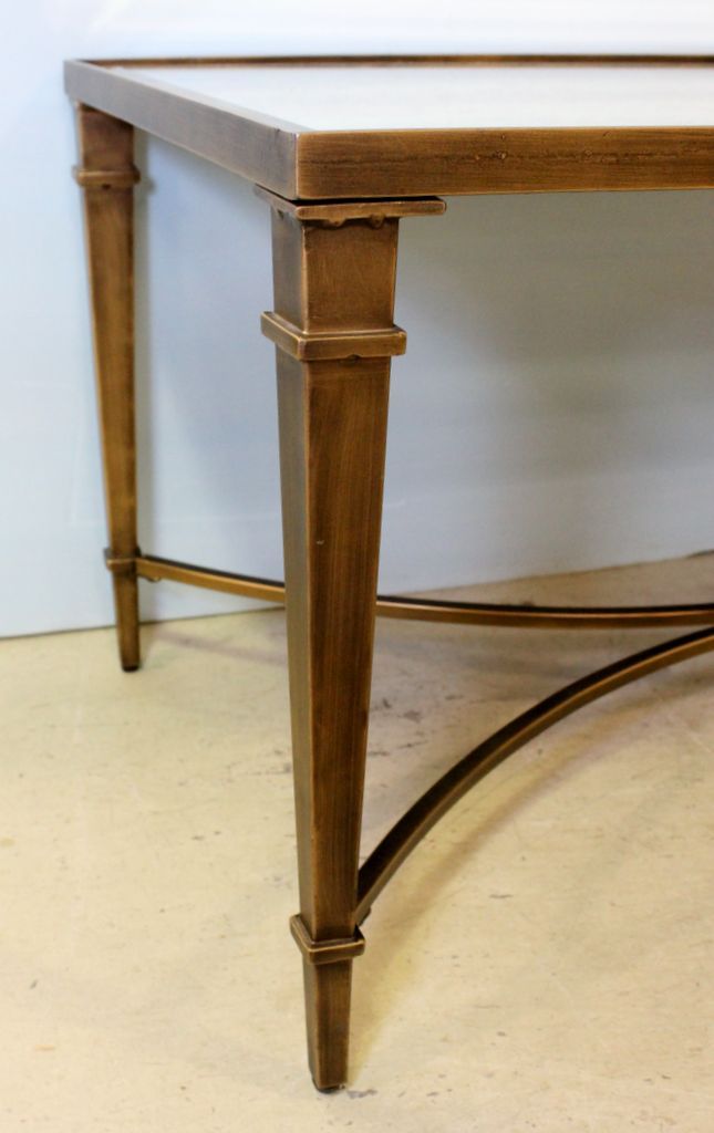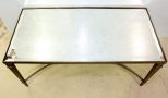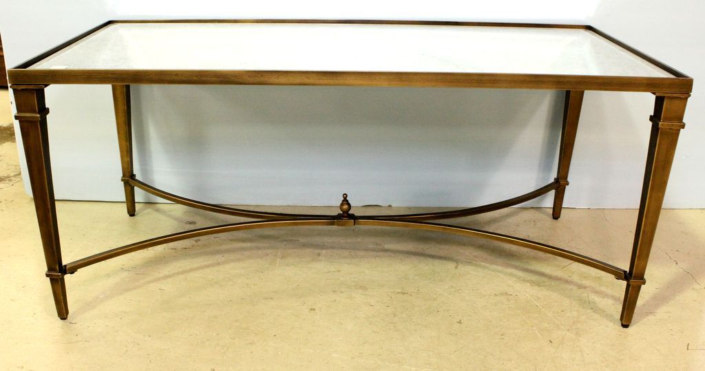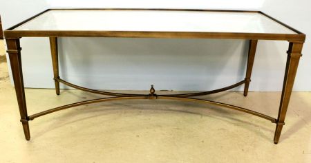 Beveled glass mirror top coffee table.; 44" w., 22" d., 19" h. Beveled glass mirror top coffee table.; 44" w., 22" d., 19" h.