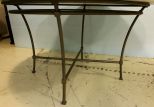 Contemporary round marble top table with iron legs.; 60" dia., 30" h. Contemporary round marble top table with iron legs.; 60" dia., 30" h.