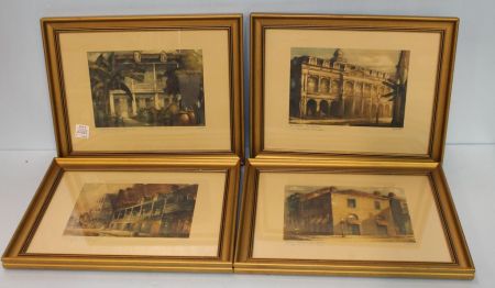 4 1930’s Illinois Central Railroad prints of Historic New Orleans Landmarks by artist Al Wettel.; 13 1/2" w., 10 1/2" h. 4 1930’s Illinois Central Railroad prints of Historic New Orleans Landmarks by artist Al Wettel.; 13 1/2" w., 10 1/2" h.