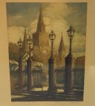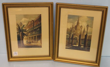 pair of 1930’s Illinois Central Railroad prints of Historic New Orleans Landmarks by artist Al Wettel.; 10 1/2" w., 13 1/2" h. pair of 1930’s Illinois Central Railroad prints of Historic New Orleans Landmarks by artist Al Wettel.; 10 1/2" w., 13 1/2" h.